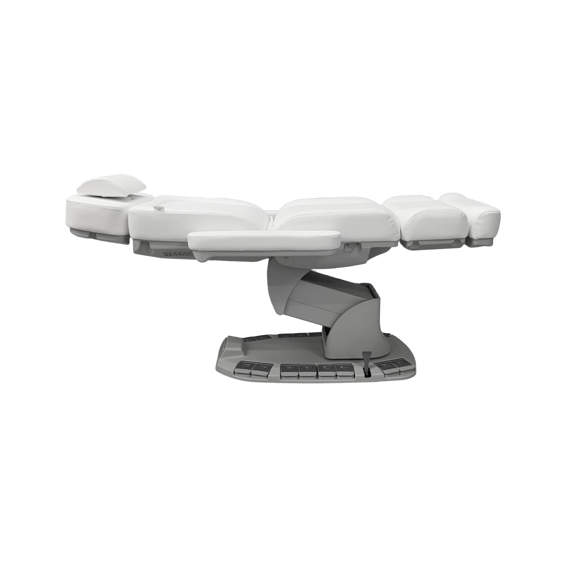 Capable of laying completely flat and entering Trendelenburg position for a variety of medical and spa treatments.