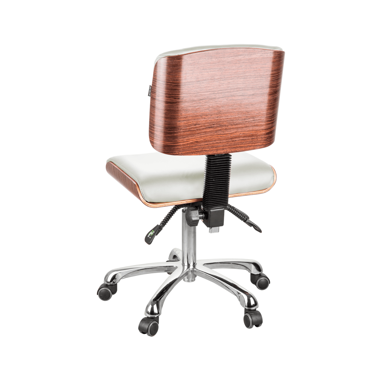 Introducing the 1071 Contoured Rolling Stool with Back Support: A masterpiece of ergonomic design and stylish functionality, meticulously designed for professionals who value comfort and quality. Elevate your practice with this elegant stool, featuring a sleek teak wood finish that brings a refined sophistication to your workspace.